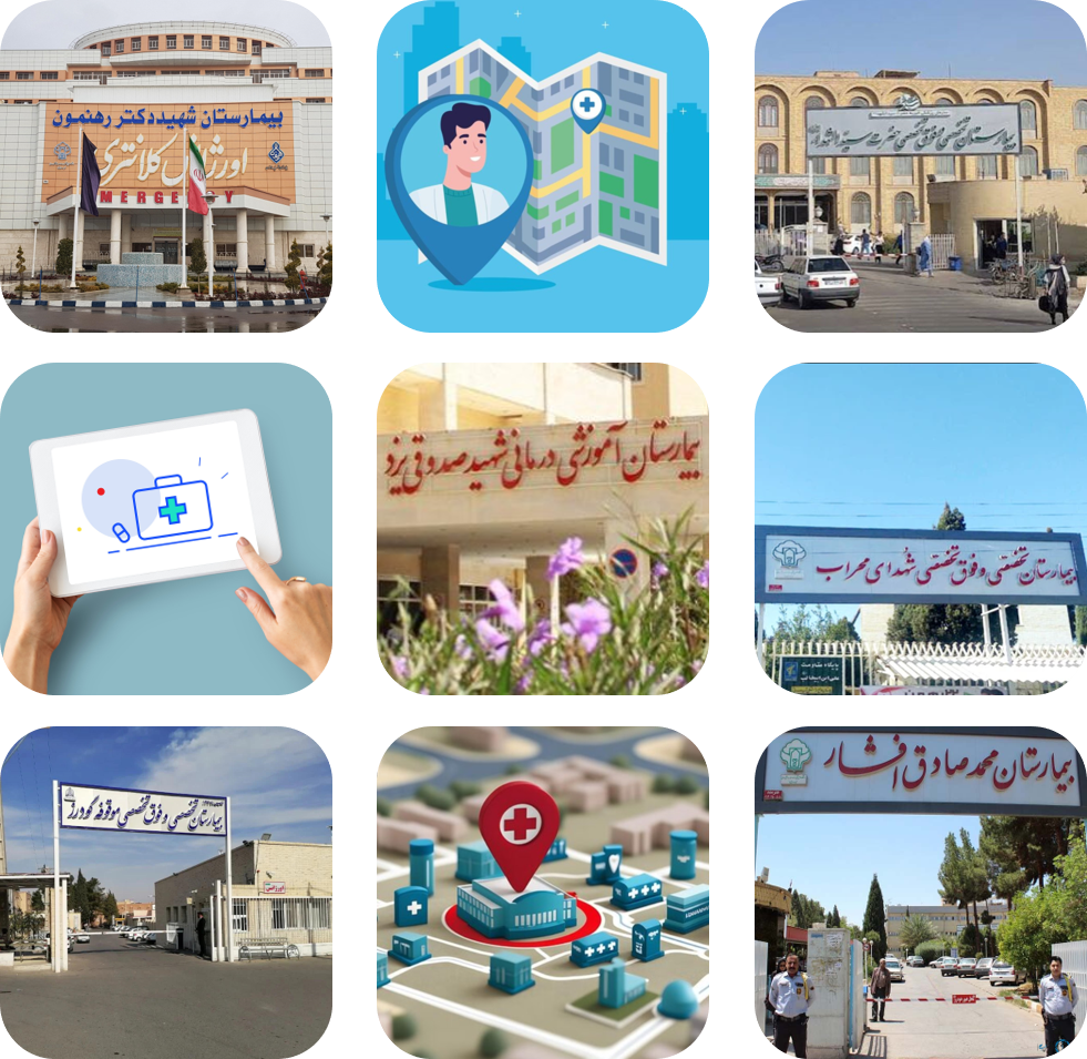 یزد، میدان معلم، ابتدای بلوار پاکنژاد، بیمارستان شهدای محراب، خیابان حاتمی پور